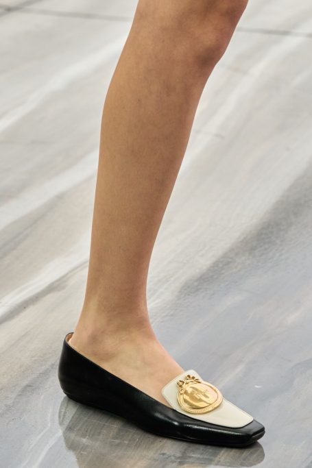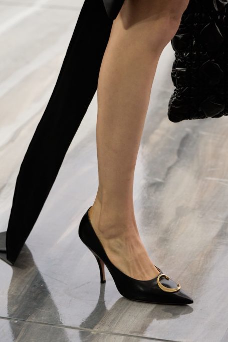 Quant aux souliers, du mocassin à l'escarpin tous sont estampiés Dior de manières différentes : écussons, gravures avec ouverture sur le pied au niveau de la lettre O ou encore les célèbres initiales C sur un pied et le D sur l'autre pour ne pas oublier que vos souliers sont d'une nouvelle vision chez Dior.